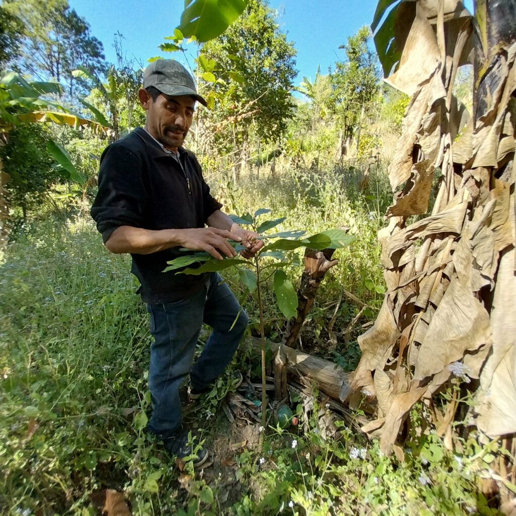Julio Aguilar con plantas de cacao