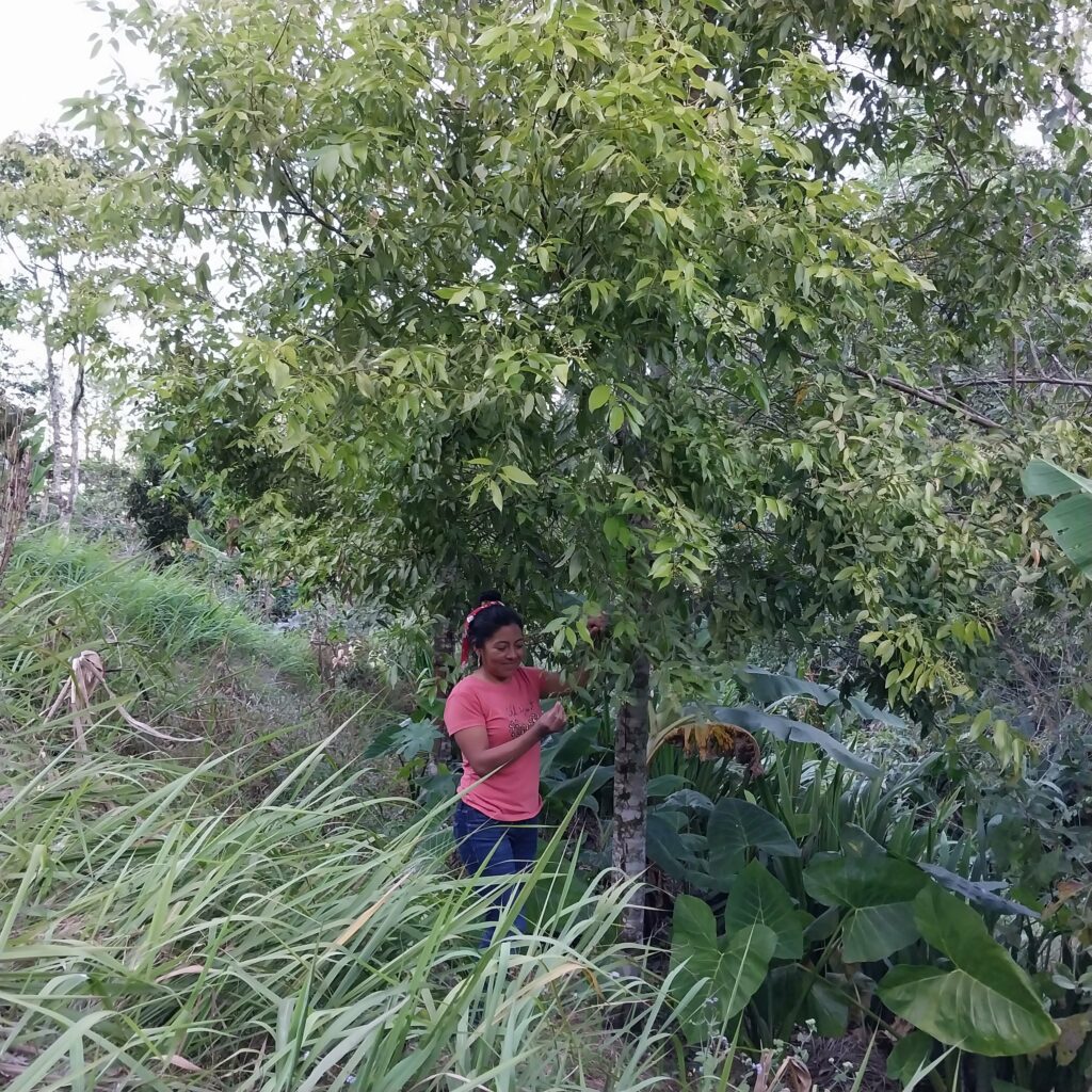 Marlen Hernandez con arboles de canela
